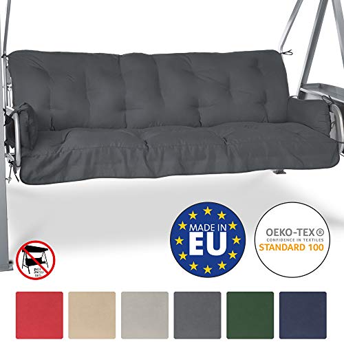 Beautissu Hollywoodschaukel-Auflage Flair HS Gartenschaukel-Auflage 180x50x8cm Möchten Sie es sich in Ihrem Garten richtig gemütlich machen und den Sommer genießen? Mit der hochwertigen Gartenschaukel-Auflage von Beautissu verwandeln Sie jede Schaukel im Handumdrehen in eine bequeme Sitzgelegenheit. Die gepolsterten Auflagen machen Ihre gewöhnliche Hollywood-Schaukel zu einer äußerst bequemen Sitzgelegenheit. Die ca. 10cm starke Polsterung ist aufgrund der guten straffen Polyurethan-Schaumfüllung ganz besonders weich und bringt sich jederzeit wieder zurück in seine ursprüngliche Form. Zur Befestigung der Polster-Auflage sind 7 Bänder zum Festschnüren vorhanden. Zu jeder Auflage werden 2 passende Dekokissen mitgeliefert. Produktdetails: Gesamtmaße: ca. 180x100x8 cm Maße Sitzfläche: ca. 180×50 cm Maße Rückenpolster: ca. 180×50 cm Maße der Dekokissen: ca. 49×25 cm Maße des Volant: 16 cm breit Befestigung: 7 x Doppelbändchen je 40 cm lang Material des Bezugs: 40% Polyester, 60% Baumwolle Füllung: hochwertige, weiche Flocken aus Polyurethan-Schaum UV-Lichtechtheit: 5 Made in Europe Pflegehinweis: Handwäsche bei 30°C Alles in einem Design: Weitere dazu passende Gartenstuhlauflagen finden Sie, indem Sie bei Amazon nach „Beautissu Auflage“ suchen. Die angegebenen Maße entsprechen der Stoffgröße von Naht zu Naht gemessen. Produktionsbedingt kann es unter Umständen aufgrund der guten und straffen Füllung zu Größenabweichungen kommen.(Bitte beachten Sie: Die abgebildete Schaukel ist nicht im Lieferumfang enthalten.)