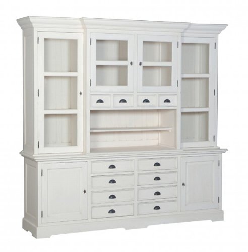 Großer Shabby Chic Landhaus Stil Schrank mit  6 Türen und 12 Schubladen – BuffetschrankGefertigt aus Kiefer und MdfBreite 235 cmTiefe: 55/45 cmHöhe 225 cmDesign: Landhaus Stilmassive QualitätSchöner Landhaus Stil Buffetschrank im Shabby Chic Look. Ein echter Hingucker für ein stilvolles Wohnambiente!
