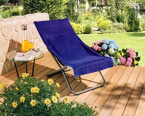Schonbezug für Gartenliege, Strandliegenauflage, Frottee Schonbezug, 94% Baumwolle & 6% Polyester 70 x 200 – Brandsseller (65×130, Blau)